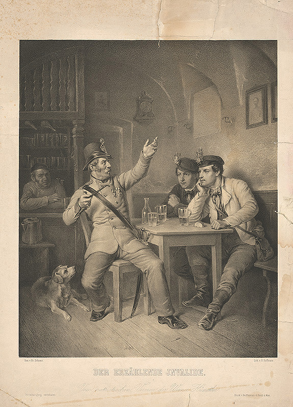Rudolf Hoffmann, Franz Schams – Rozprávajúci invalida, 1860–1880, Galéria mesta Bratislavy, GMB, https://www.webumenia.sk/dielo/SVK:GMB.C_10425