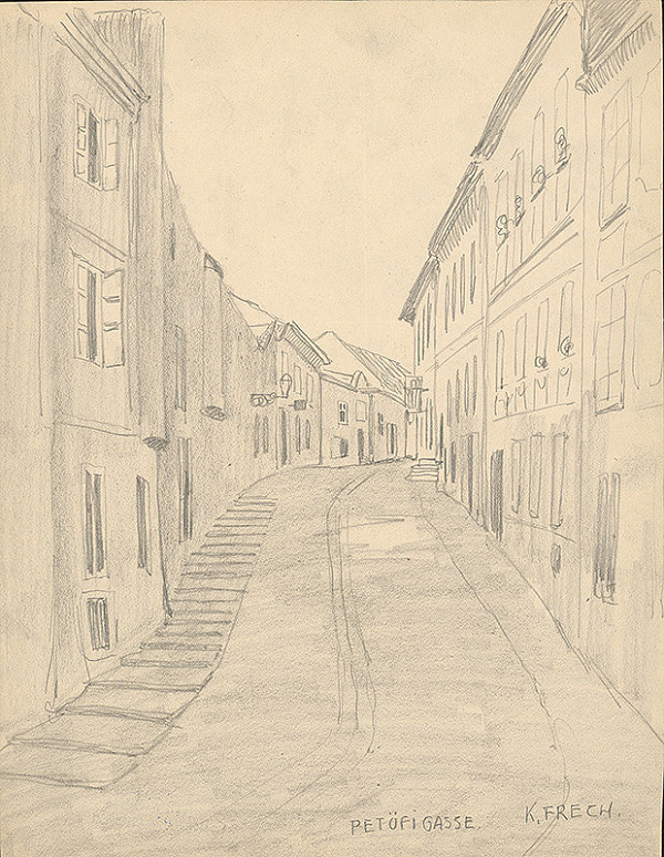Karol Frech – Bývalá Petöfiho ulica v Bratislave, 1920–1930, Galéria mesta Bratislavy, GMB, https://www.webumenia.sk/dielo/SVK:GMB.C_10855