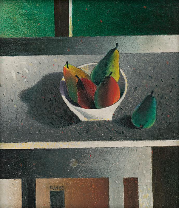 Rudolf Moško – Zátišie s hruškami, 20. storočie, 2. polovica, 1982, Galéria Miloša Alexandra Bazovského, GBT, https://www.webumenia.sk/dielo/SVK:GBT.O_1130
