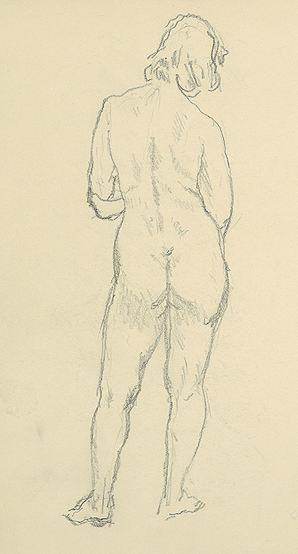 Jaroslav Vodrážka – Akt zo zadu, 1950, Galéria umenia Ernesta Zmetáka, GNZ, https://www.webumenia.sk/dielo/SVK:GNZ.K_170