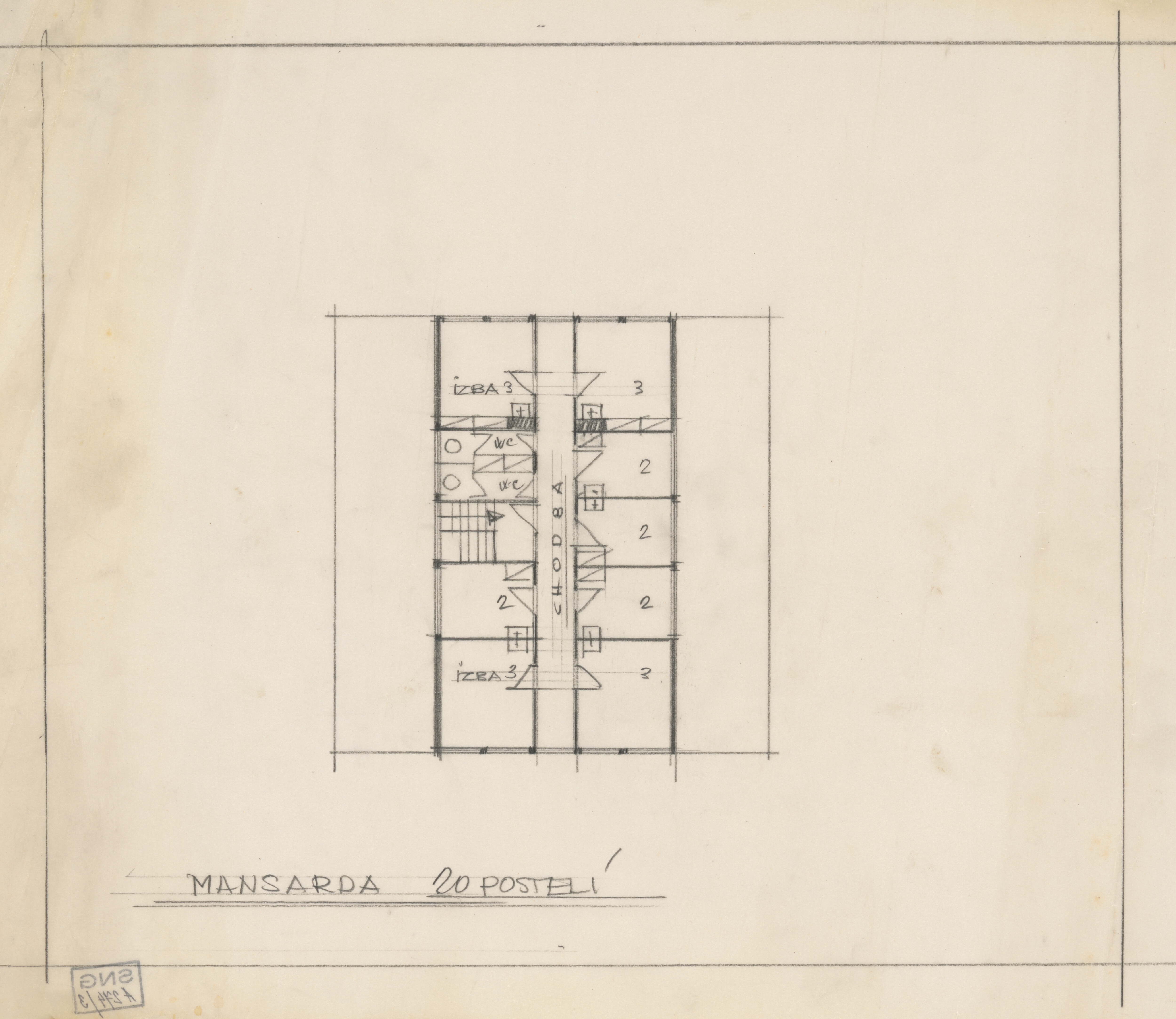 Ferdinand Čapka – Štúdia horskej chaty. Pôdorys mansardy., , Slovenská národná galéria, SNG, https://www.webumenia.sk/dielo/SVK:SNG.A_274-3