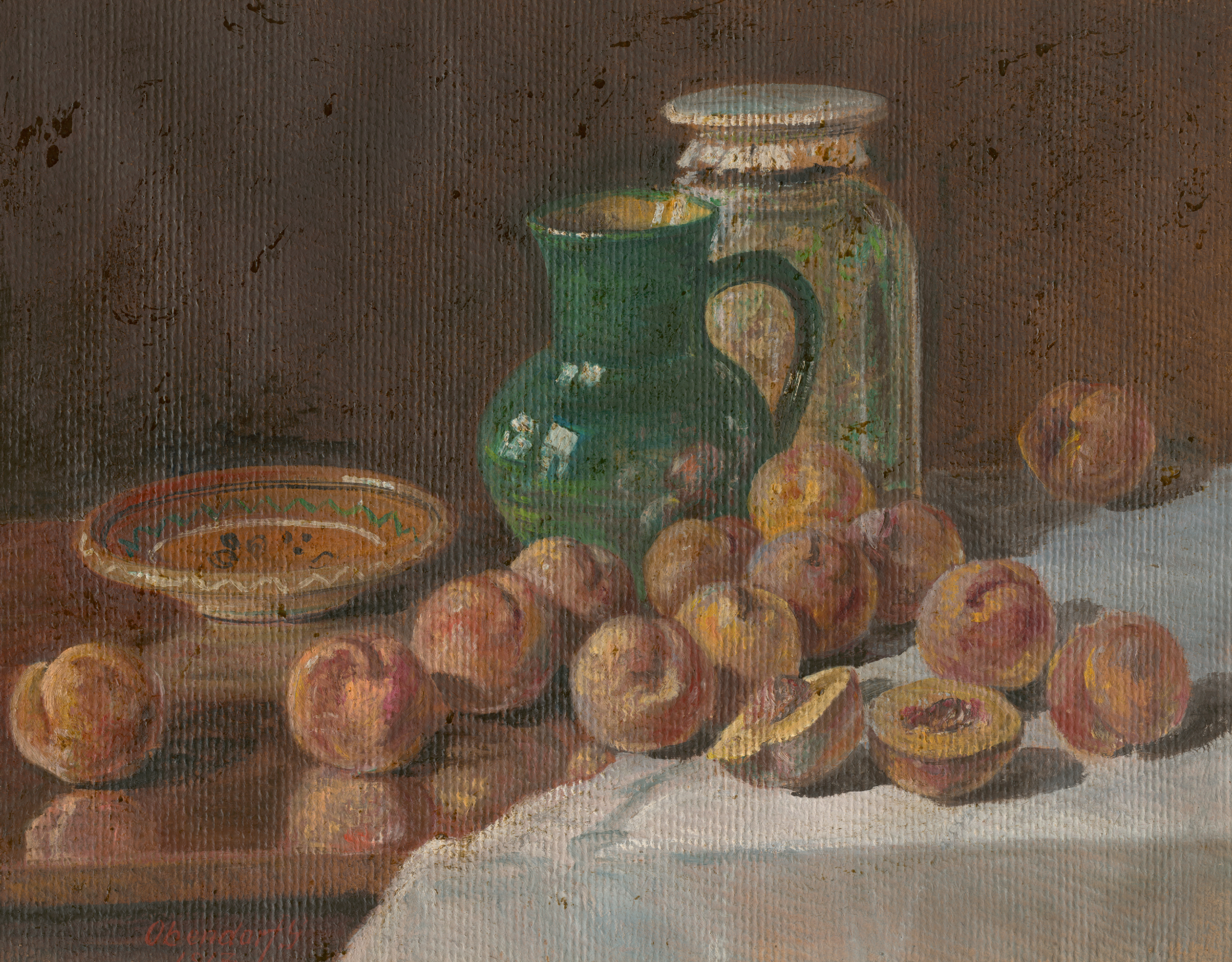 Gustáv Adolf Obendorf – Zátišie s broskyňami, 1917, Slovenská národná galéria, SNG, https://www.webumenia.sk/dielo/SVK:SNG.O_3021
