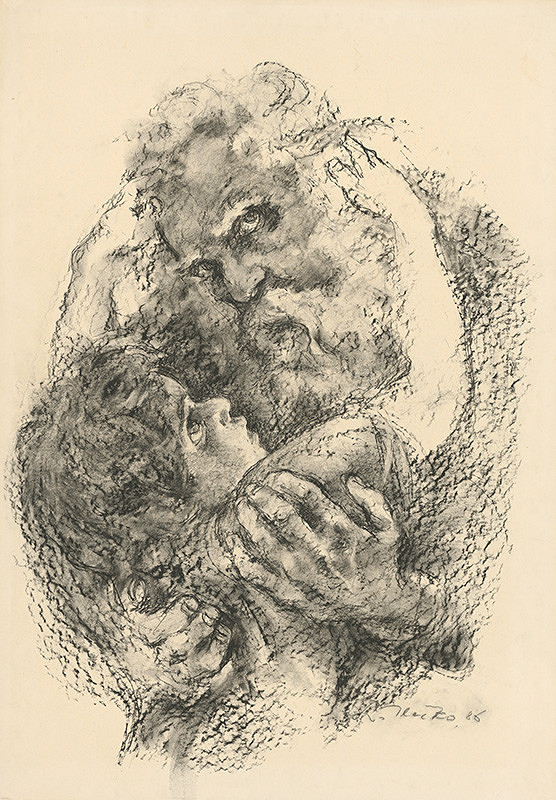 Ľudovít Ilečko – Skica starca a dieťaťa v objatí, 1986, Slovenská národná galéria, SNG, https://www.webumenia.sk/dielo/SVK:SNG.UP-P_3580