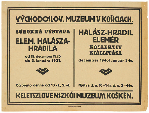 Neznámy autor – Súborná výstava Elem. Halásza-Hradila. Halász-Hradil Elemér kolektiv kiállitása. Východoslov. muzeum v Košiciach., 20. storočie, 1. polovica, 1920 – 1921, Slovenská národná galéria, SNG, https://www.webumenia.sk/dielo/SVK:SNG.UP-P_916