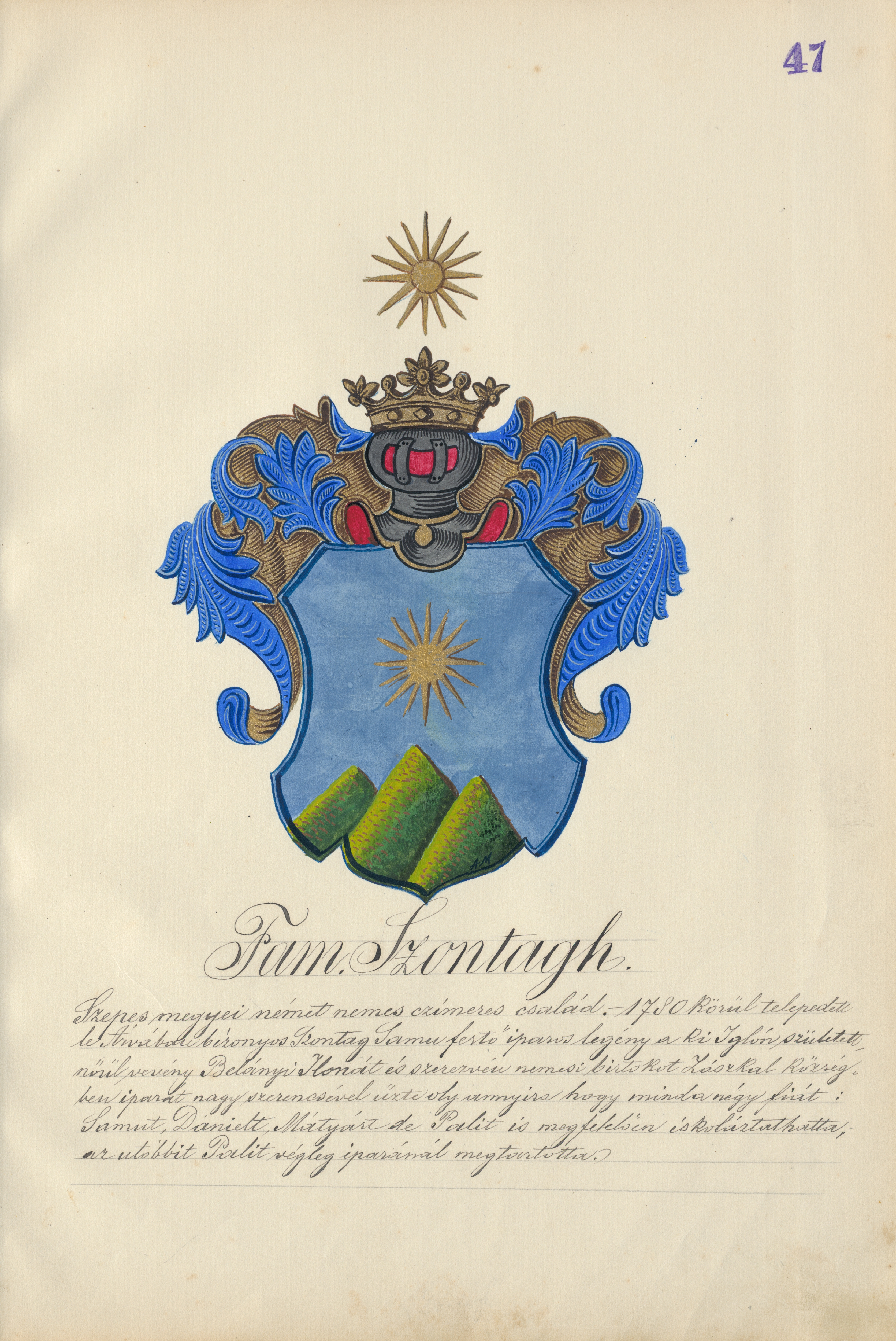 Adolf Medzihradský – Erb rodiny Szontághovej, 20. storočie, 1. polovica, 1904–1910, Oravská galéria, OGD, https://www.webumenia.sk/dielo/SVK:OGD.K_60