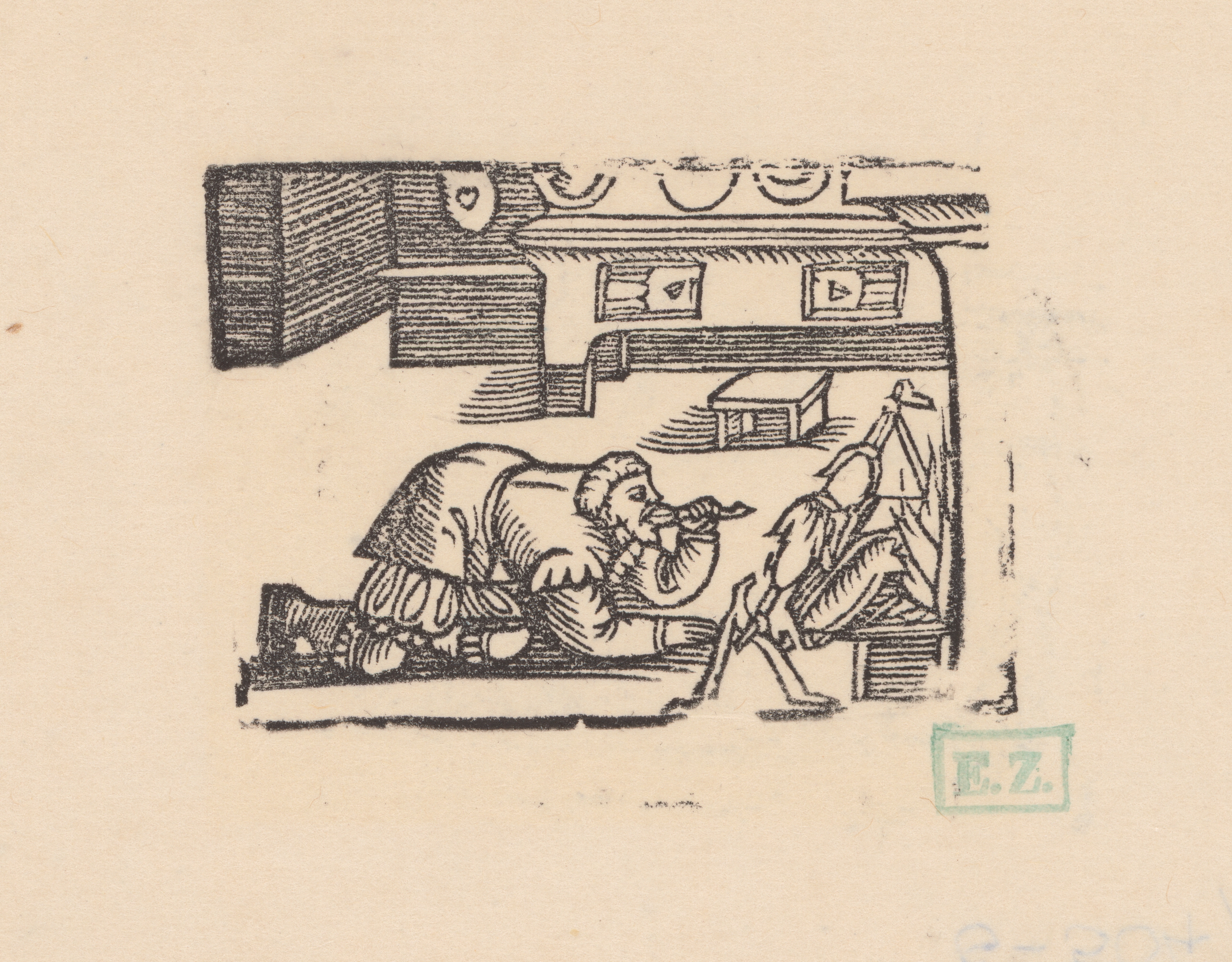 Norimberskí kopisti frankfurtského vydania Dyl Vlenspiegel – Eilenšpígel objedá kurča z ražňa, 16. storočie, polovica, okolo 1550, Galéria umenia Ernesta Zmetáka, GNZ, https://www.webumenia.sk/dielo/SVK:GNZ.G_504
