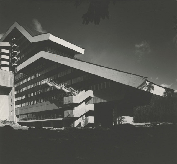 Ján Sturmayr – Rekreačné stredisko OKD na Podbanskom. Juhozápadný pohľad na mínusové poschodia., 20. storočie, 2. polovica, 1981, Slovenská národná galéria, SNG, https://www.webumenia.sk/dielo/SVK:SNG.A_389-21
