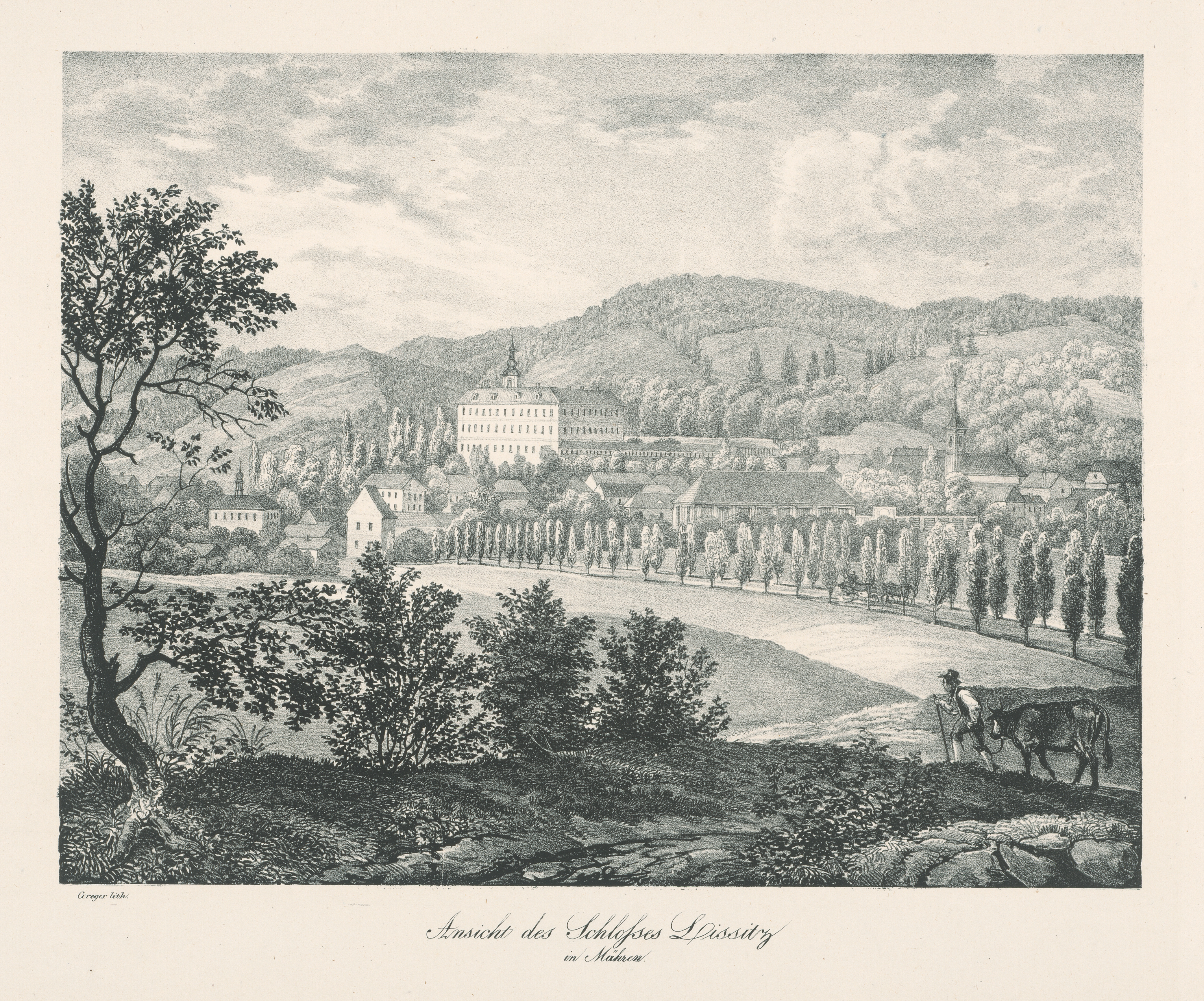 Jan Greger – Pohľad na zámok Lysice na Morave, 1850–1900, Slovenská národná galéria, SNG, https://www.webumenia.sk/dielo/SVK:SNG.G_12103