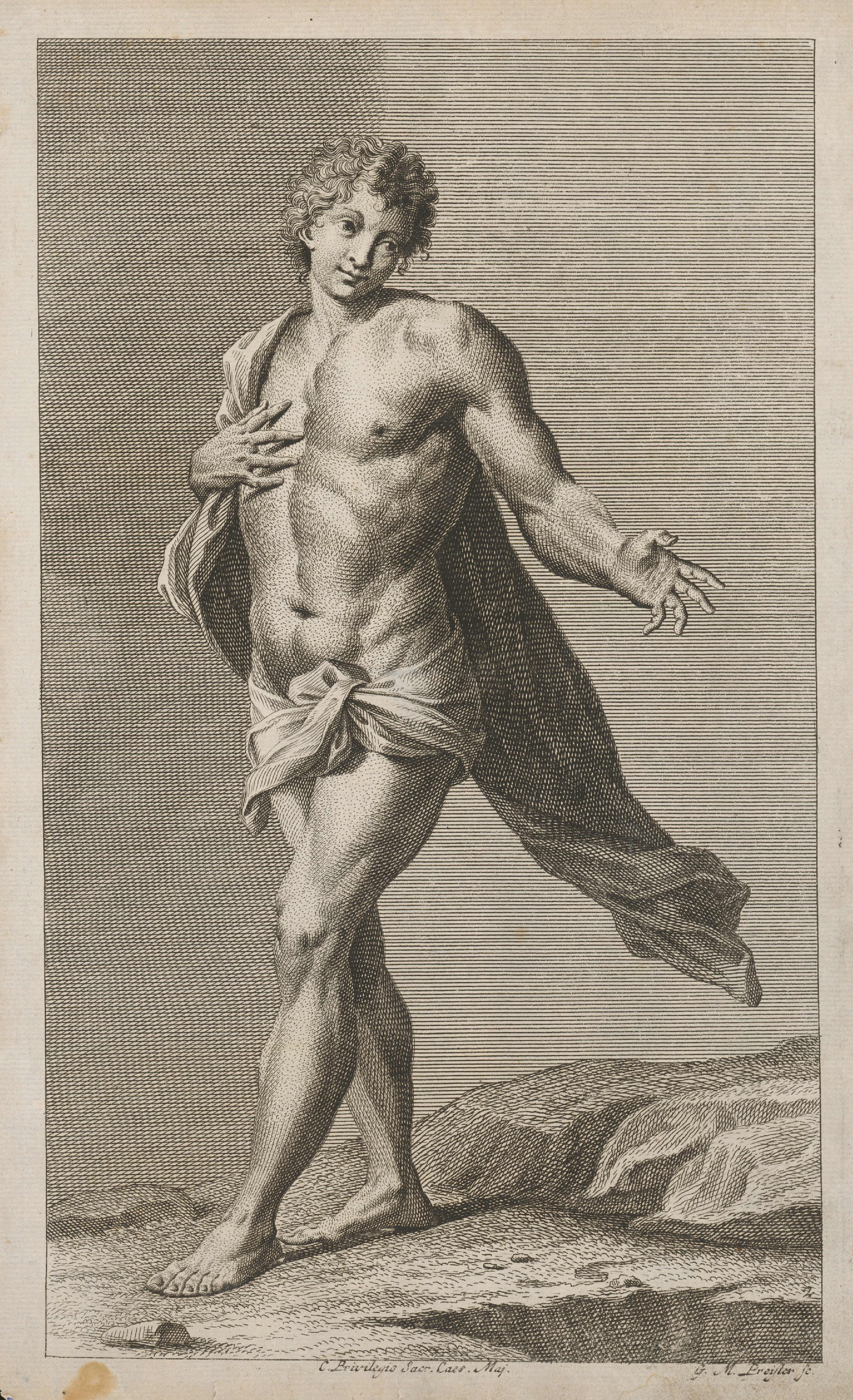 Georg Martin Preissler – 1. Figurálna kompozícia Muž s drapériou, 1730–1750, Slovenská národná galéria, SNG, https://www.webumenia.sk/dielo/SVK:SNG.G_12601
