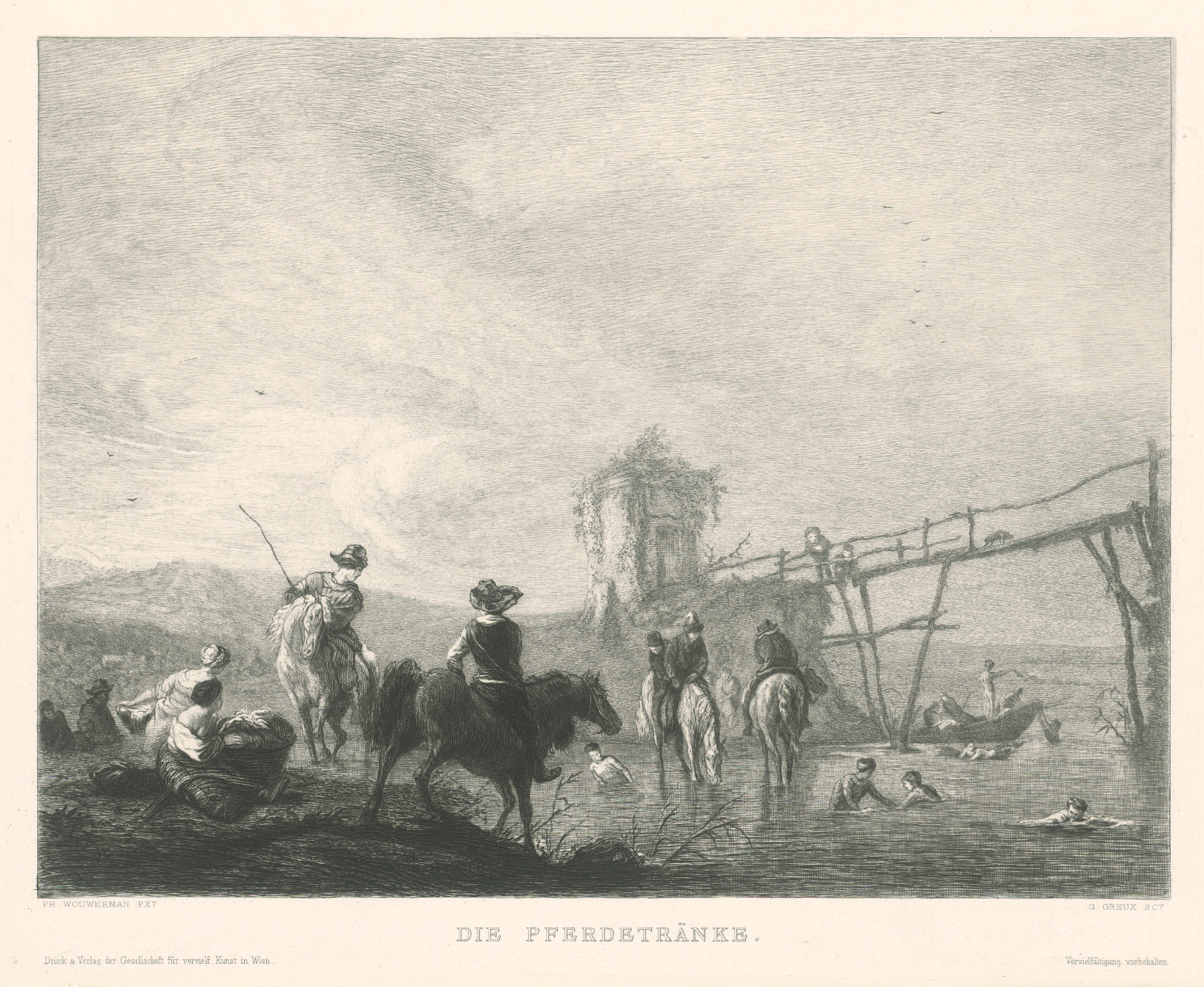 Gustave Greux, Philips Wouwerman – Napájanie koní, 1880–1919, Slovenská národná galéria, SNG, https://www.webumenia.sk/dielo/SVK:SNG.G_12958
