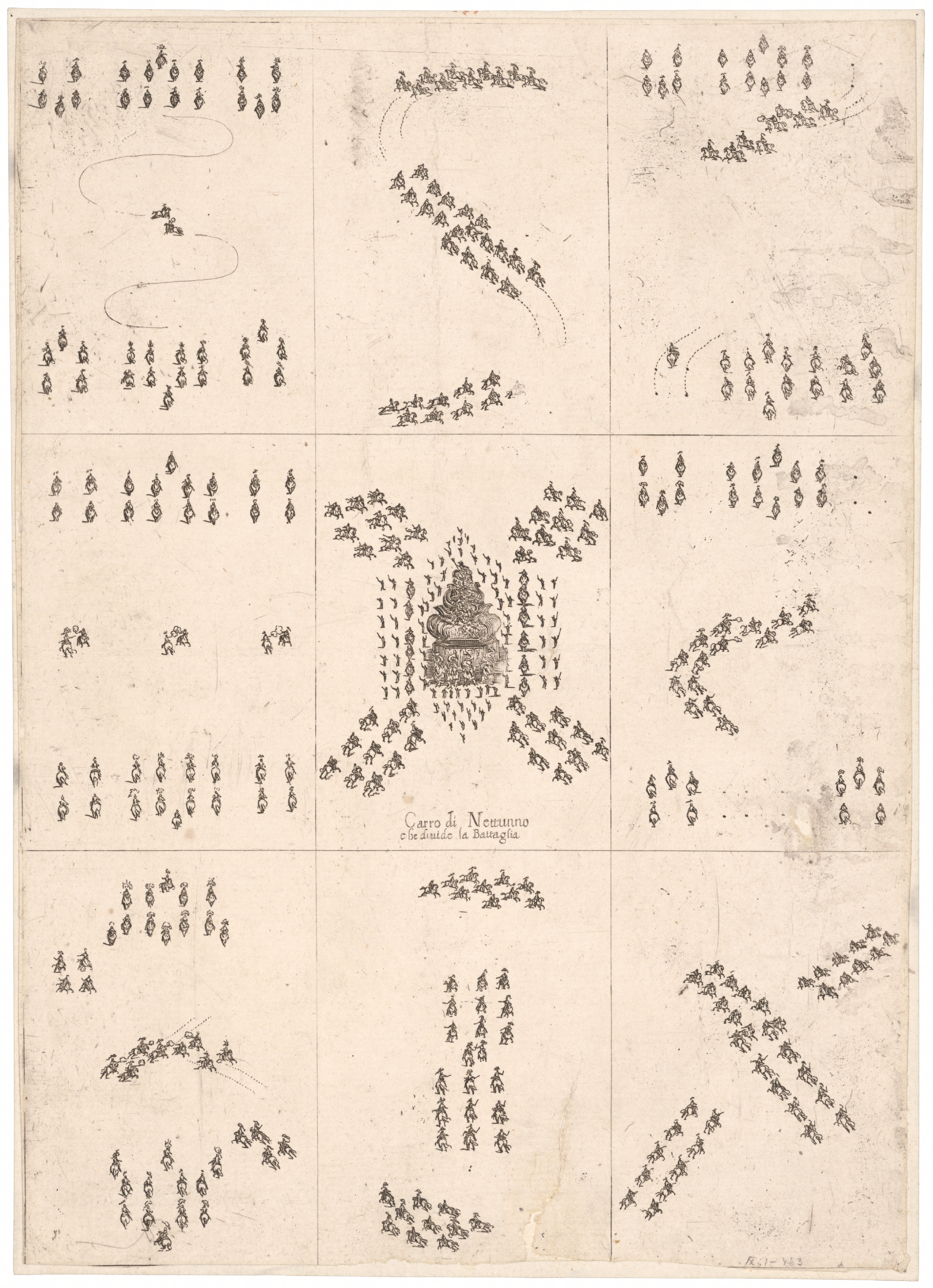 Stefano della Bella – Schéma jazdeckých slávností, 17. storočie, 2. polovica, 1652, Slovenská národná galéria, SNG, https://www.webumenia.sk/dielo/SVK:SNG.G_2485