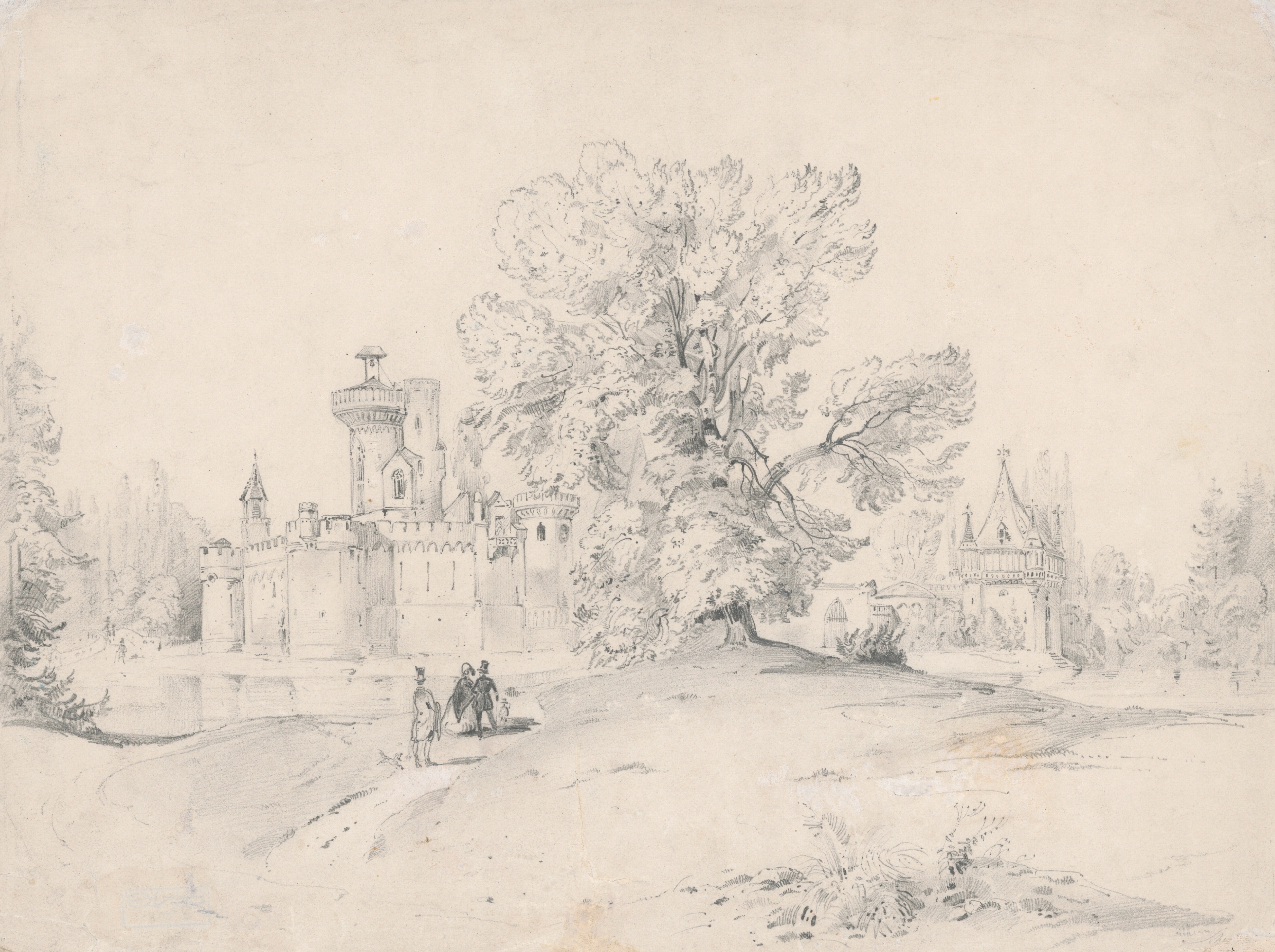 Friedrich Carl von Scheidlin – Castle with Figural Staffage in the Foreground, 1850–1855, Slovenská národná galéria, SNG, https://www.webumenia.sk/dielo/SVK:SNG.K_403