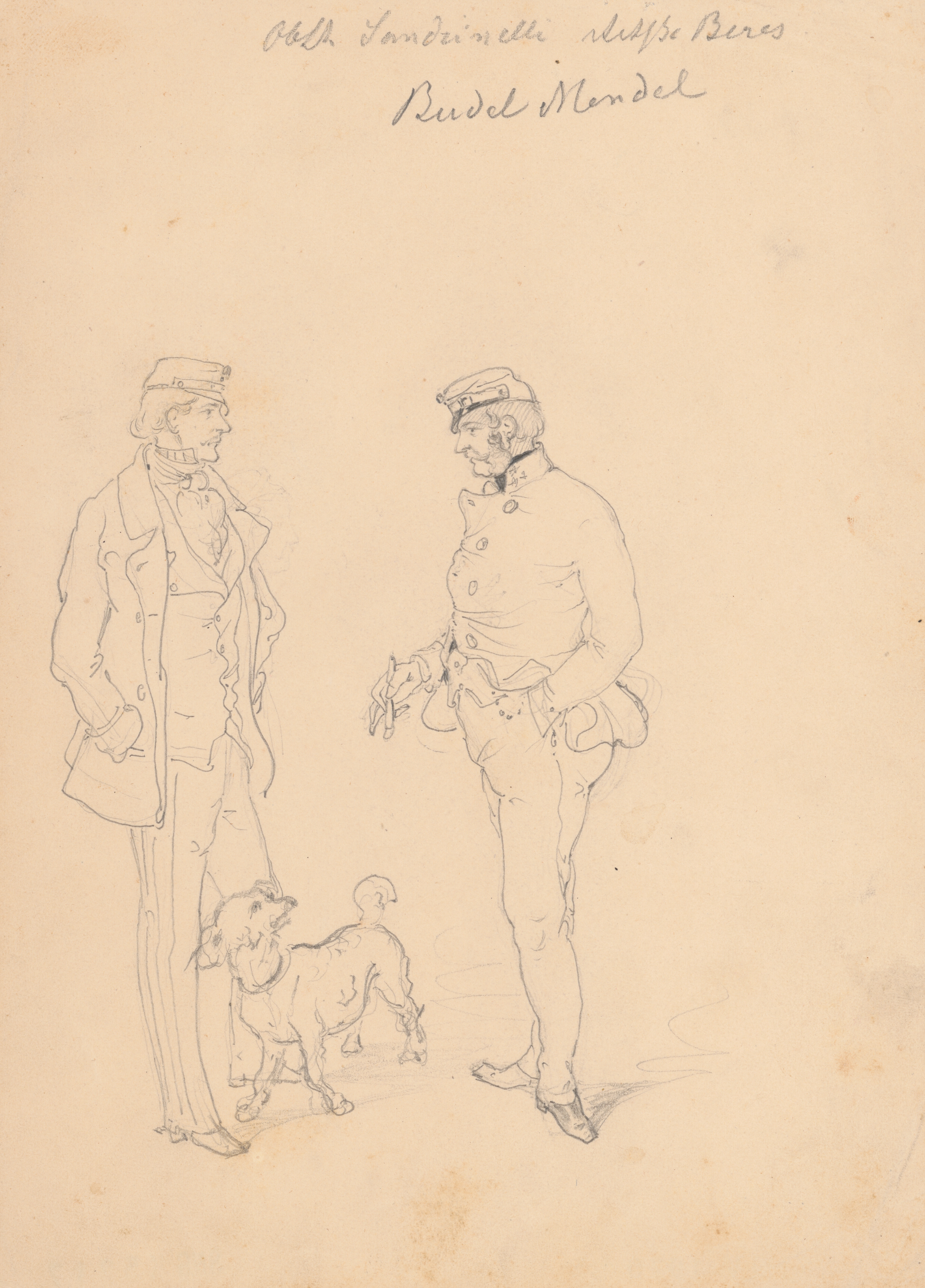 Friedrich Carl von Scheidlin – Study of Two Men in Military Uniform with a Dog, 19. storočie, polovica, 1849 okolo, Slovenská národná galéria, SNG, https://www.webumenia.sk/dielo/SVK:SNG.K_5217