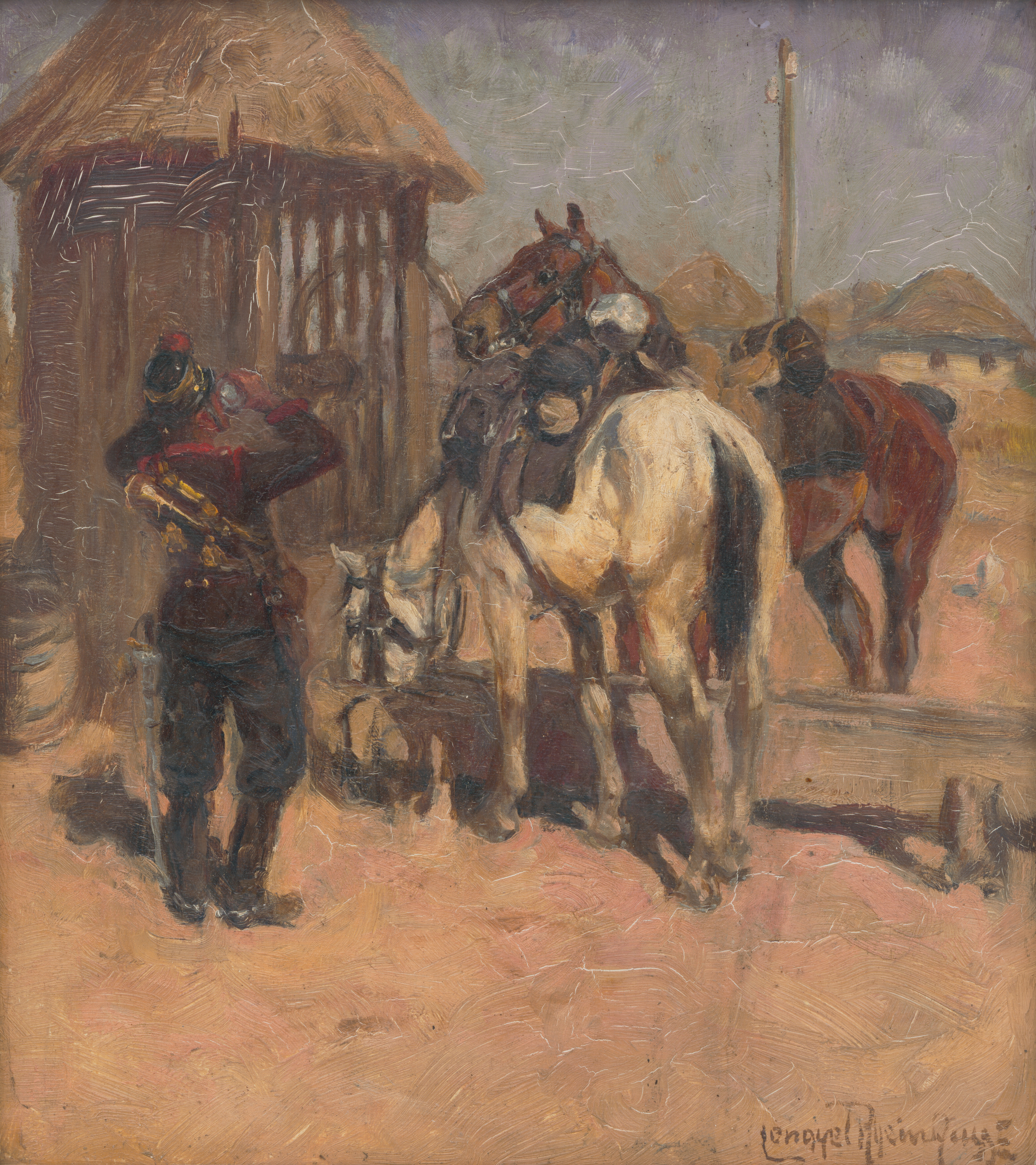 Ede Lengyel-Rheinfuss – Hussar near the well, 1916–1918, Východoslovenská galéria, VSG, https://www.webumenia.sk/dielo/SVK:VSG.O_286