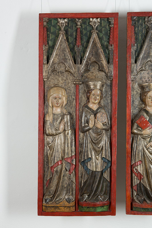 Veľmi často zobrazovanou sväticou z Nového zákona je aj Mária Magdaléna. Bratislavský majster z 1. polovice 15. storočia ju celú zahalil do červeného aranžovaného odevu, ktorý má s dobovou módou pramálo spoločné. Je to typizovaný odev svätíc, predpísaný pre ich zobrazovanie.